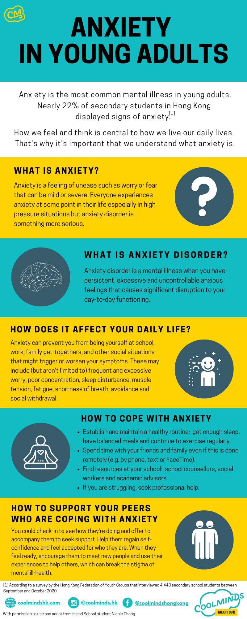 According to a survey by the Hong Kong Federation of Youth Groups that interviewed 4,443 secondary school students between September and October 2020, nearly 22% of secondary students in Hong Kong displayed signs of anxiety.