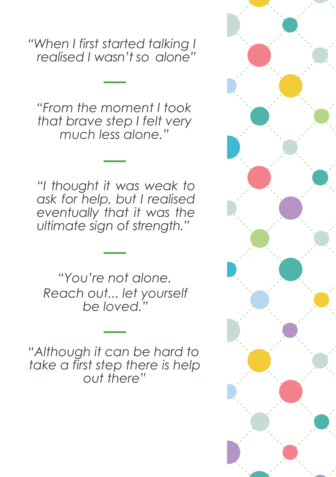 Even if you’ve gone looking for help, it can be hard to accept it – but try. Have faith in the person you’ve confided in to help you to take the first steps to make things better. They won’t be able to fix everything all in one go, but they can work with you to start to make things change.