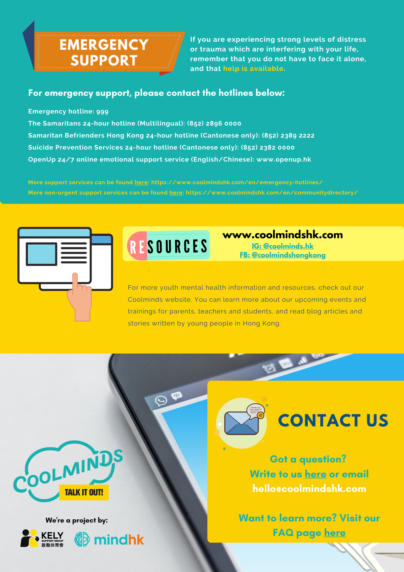 More support services can be found here: https://www.coolmindshk.com/en/emergency-hotlines/