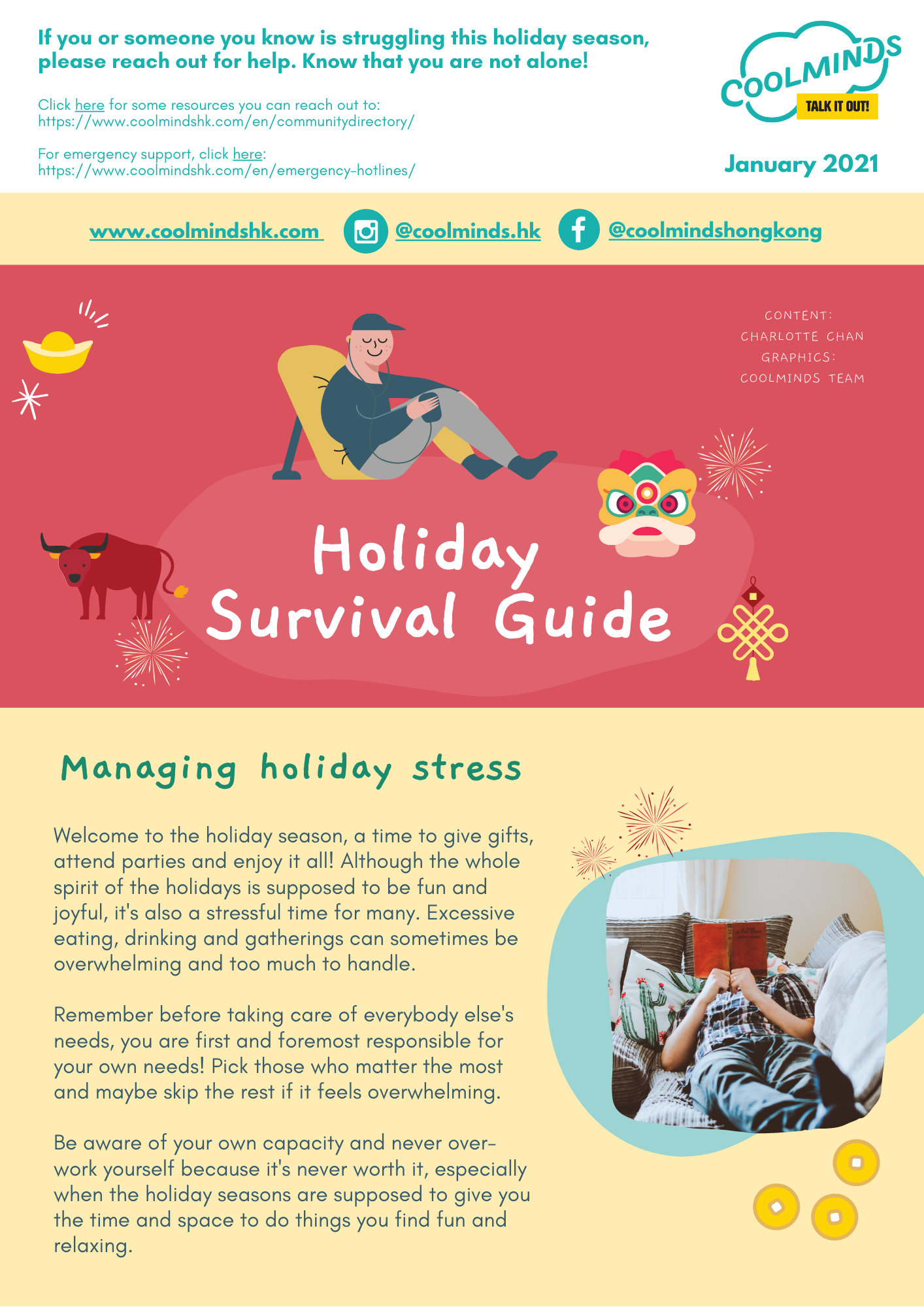 Be aware of your own capacity and never overwork yourself because it’s never worth it, especially when the holiday seasons are supposed to give you the time and space to do things you find fun and relaxing.