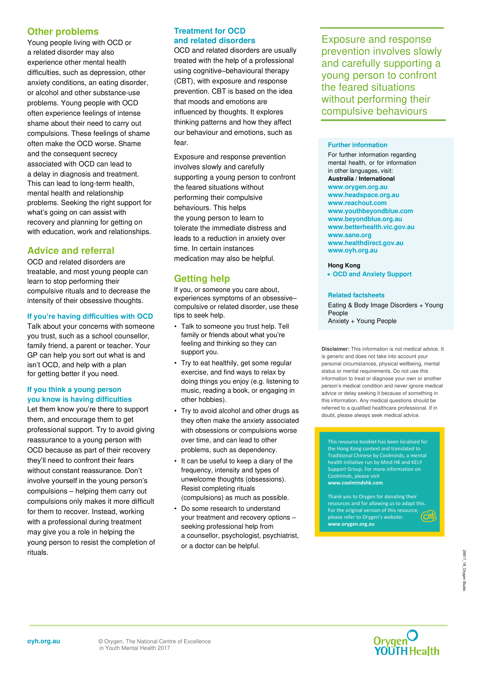 This resource booklet has been localised for the Hong Kong context and translated to Traditional Chinese by Coolminds, a mental health initiative run by Mind HK and KELY Support Group. For more information on Coolminds, please visit www.coolmindshk.com