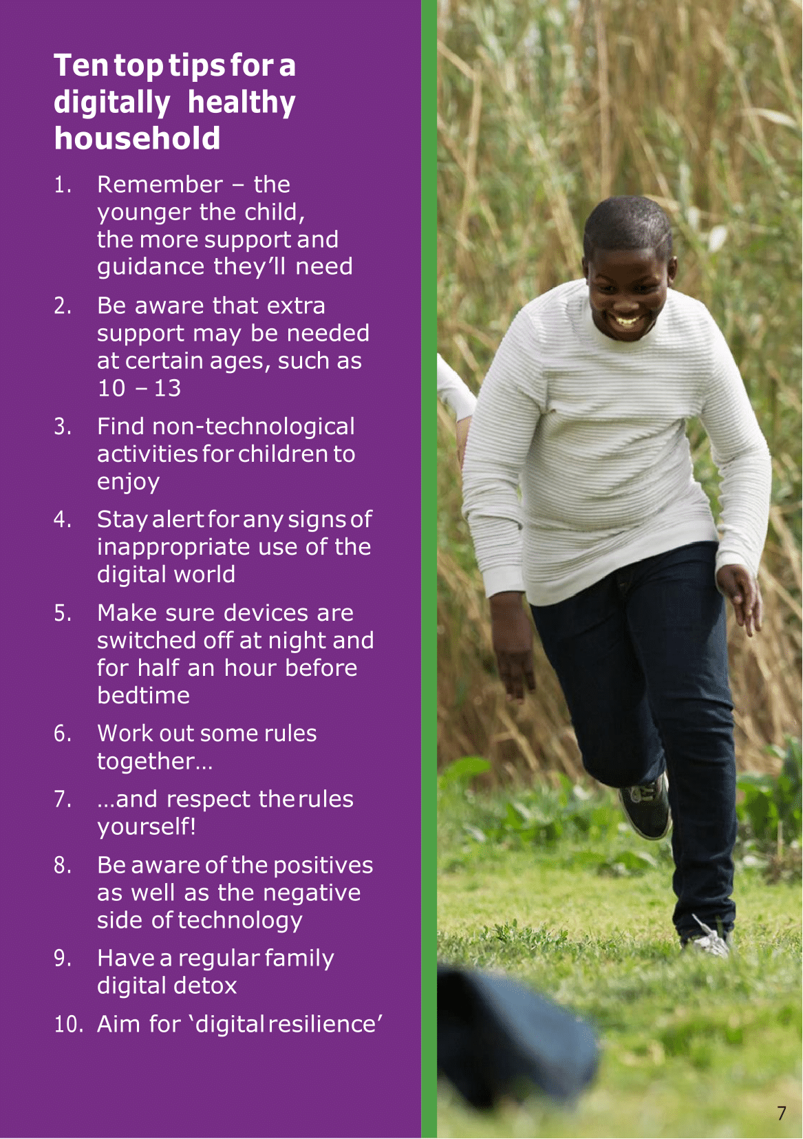 It goes without saying that the needs of children and young people will vary depending on their age. As a parent you are not going to treat a 16-year-old in the same way as you treat a 10-year-old. Broadly speaking we can say that the younger the child, the more support and guidance they need. However appealing online activities are, do try and restrict the use of screens for all ages, but particularly for the younger age groups. Do find alternative, non- technological activities, for children to enjoy.