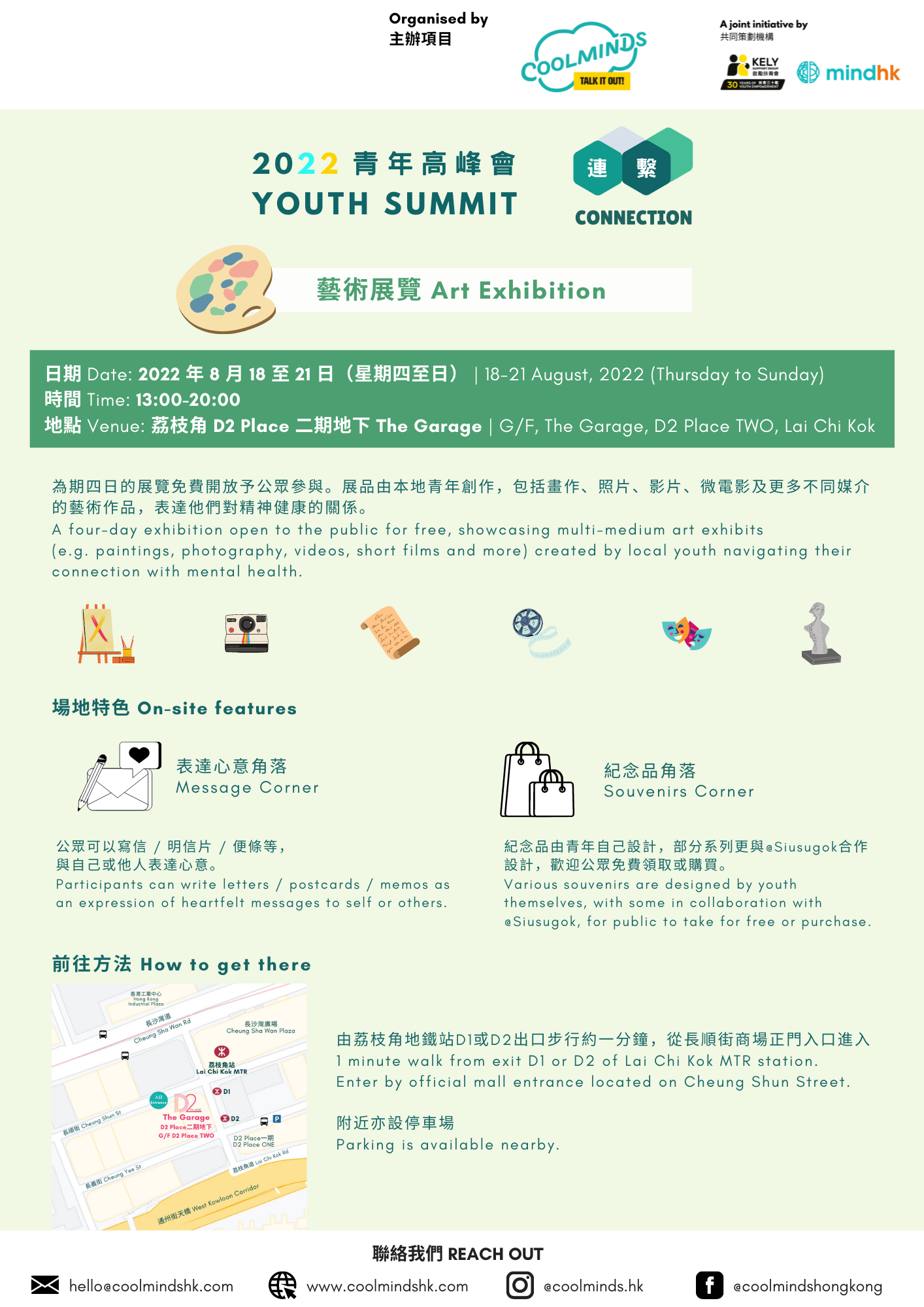 今年的Coolminds青年高峰會主題為「連繫」, 分別是與他人及與自己的身、心、靈的連繫,旨在透過實體藝術展覽及網上活動提高公眾對青年精神健康的認識及消除有關污名。