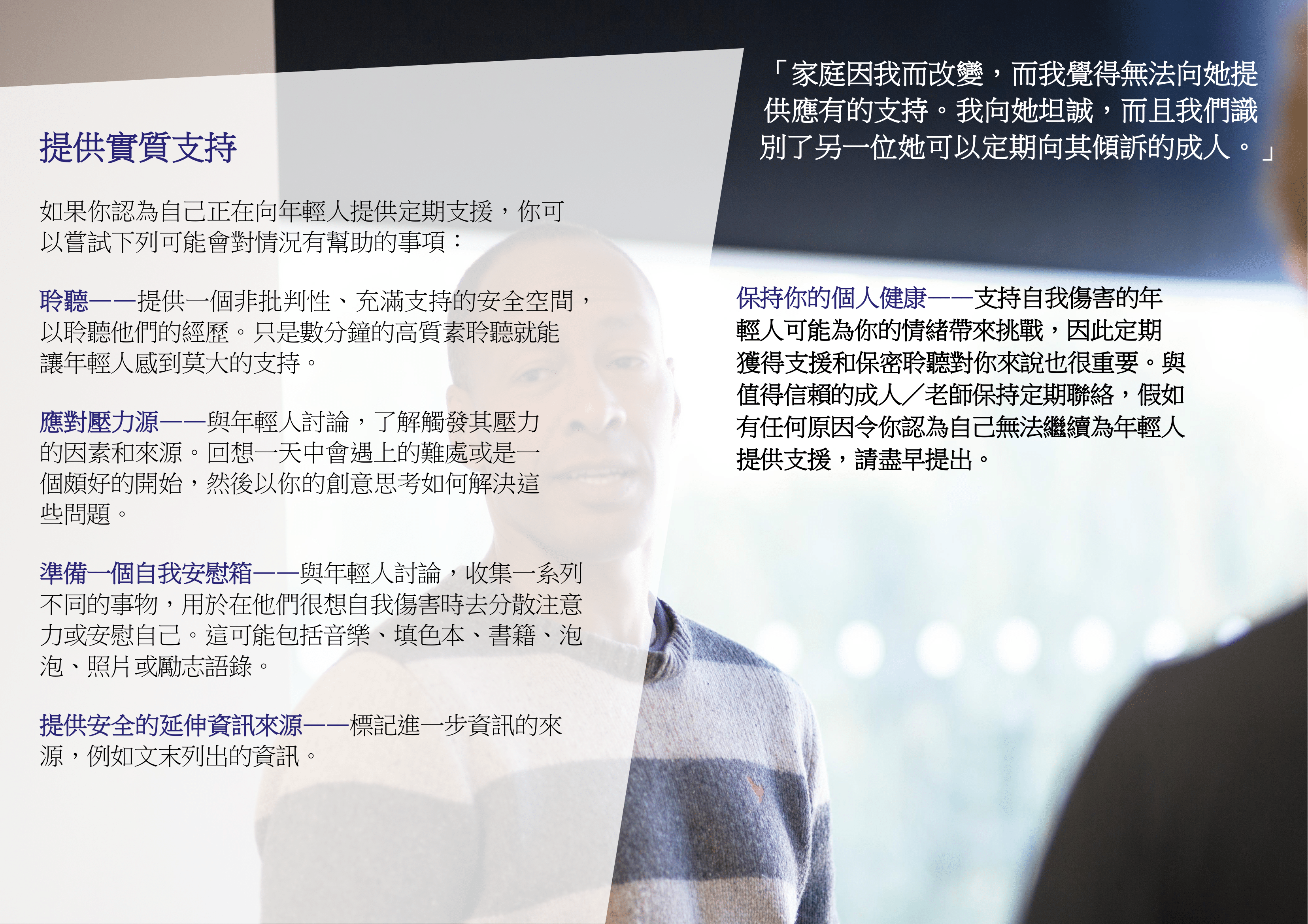 如果你認為自己正在向年輕人提供定期支援,你可以嘗試下列可能會對情況有幫助的事項: