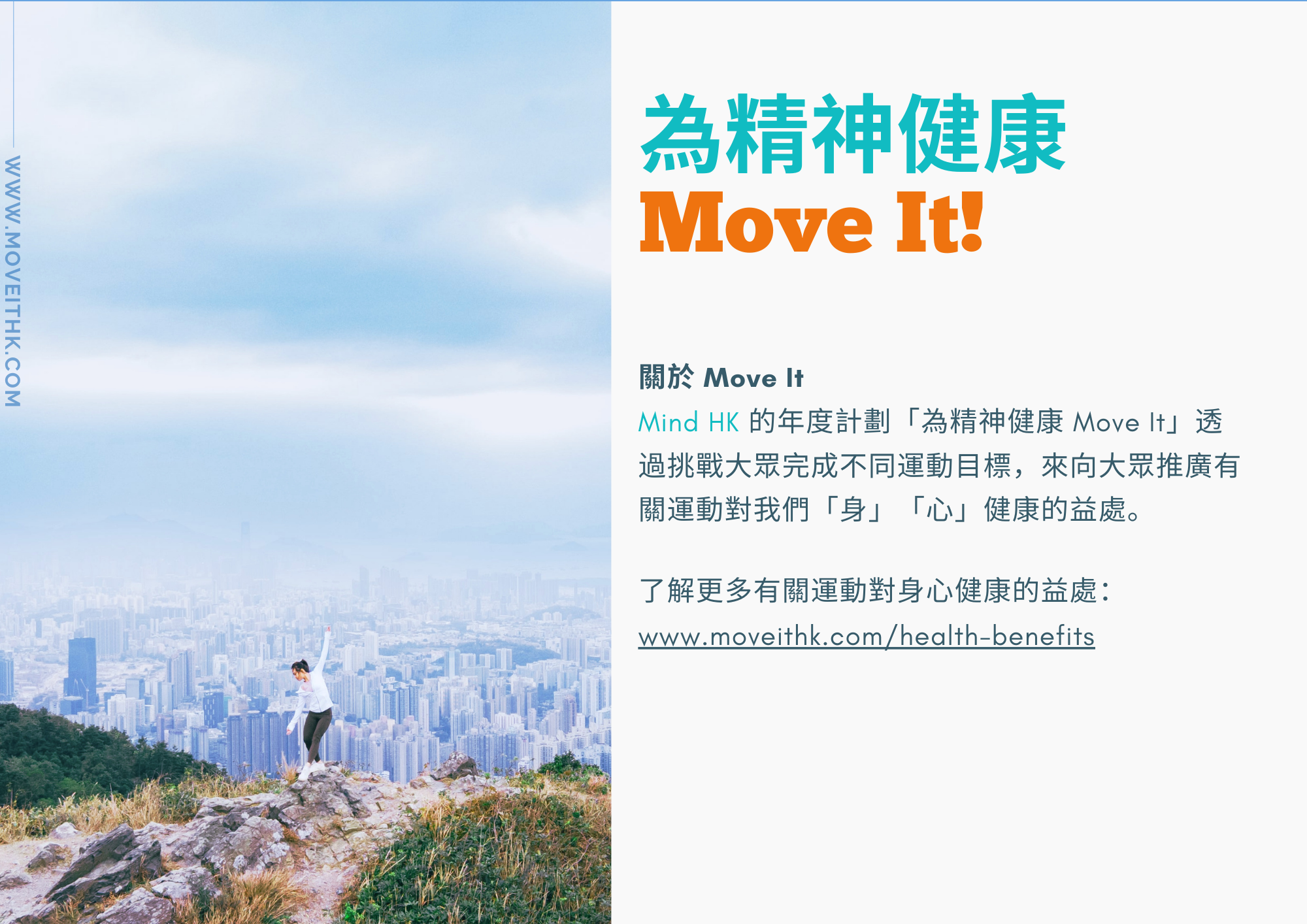 了解更多有關運動對身心健康的益處:www.moveithk.com/health-benefits