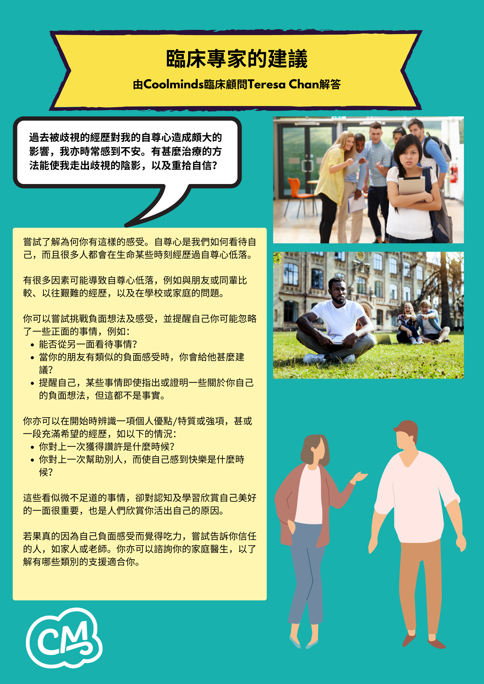 Coolminds臨床顧問Teresa Chan回答了年輕人關於污名和歧視,及兩者與精神健康的關係的一些棘手問題。
