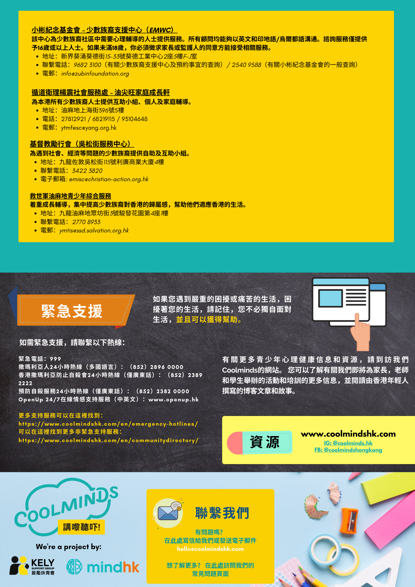 更多⽀援服務:https://www.coolmindshk.com/zh/emergency-hotlines-hk/