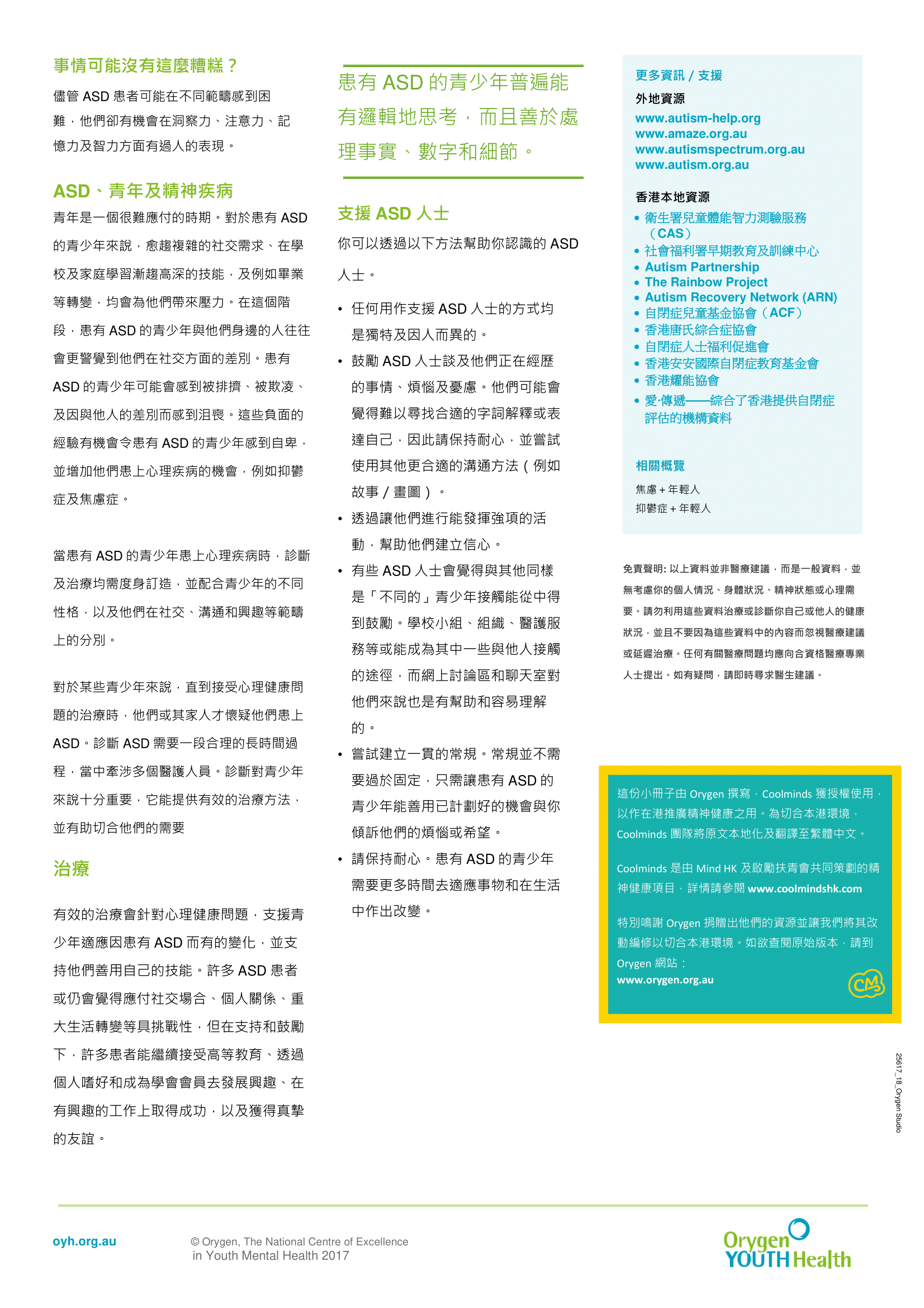 特別鳴謝 Orygen 捐贈出他們的資源並讓我們將其改動編修以切合本港環境。如欲查閱原始版本,請到 Orygen網站: www.orygen.org.au