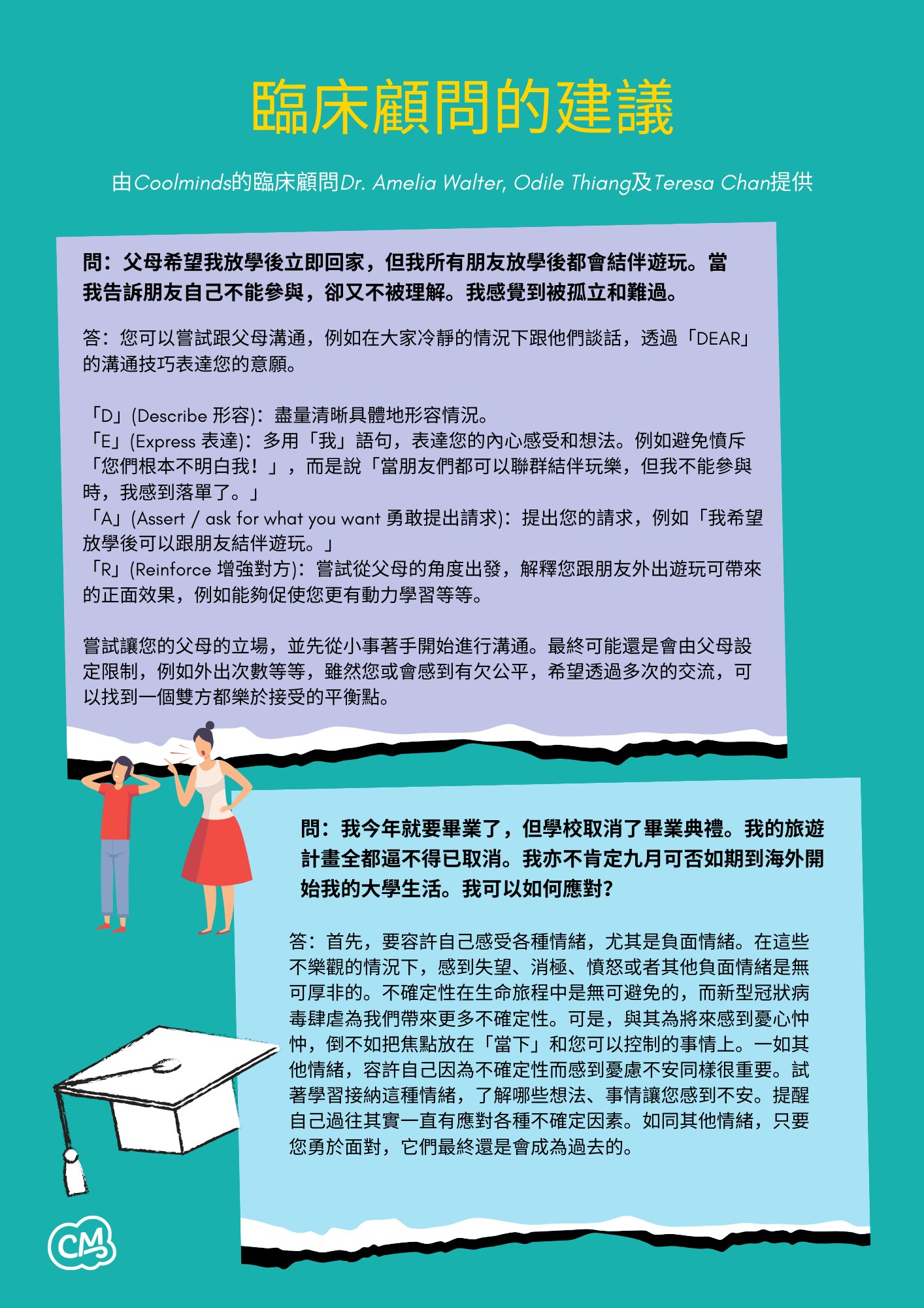 由Coolminds的臨床顧問Dr. Amelia Walter, Odile Thiang及Teresa Chan提供