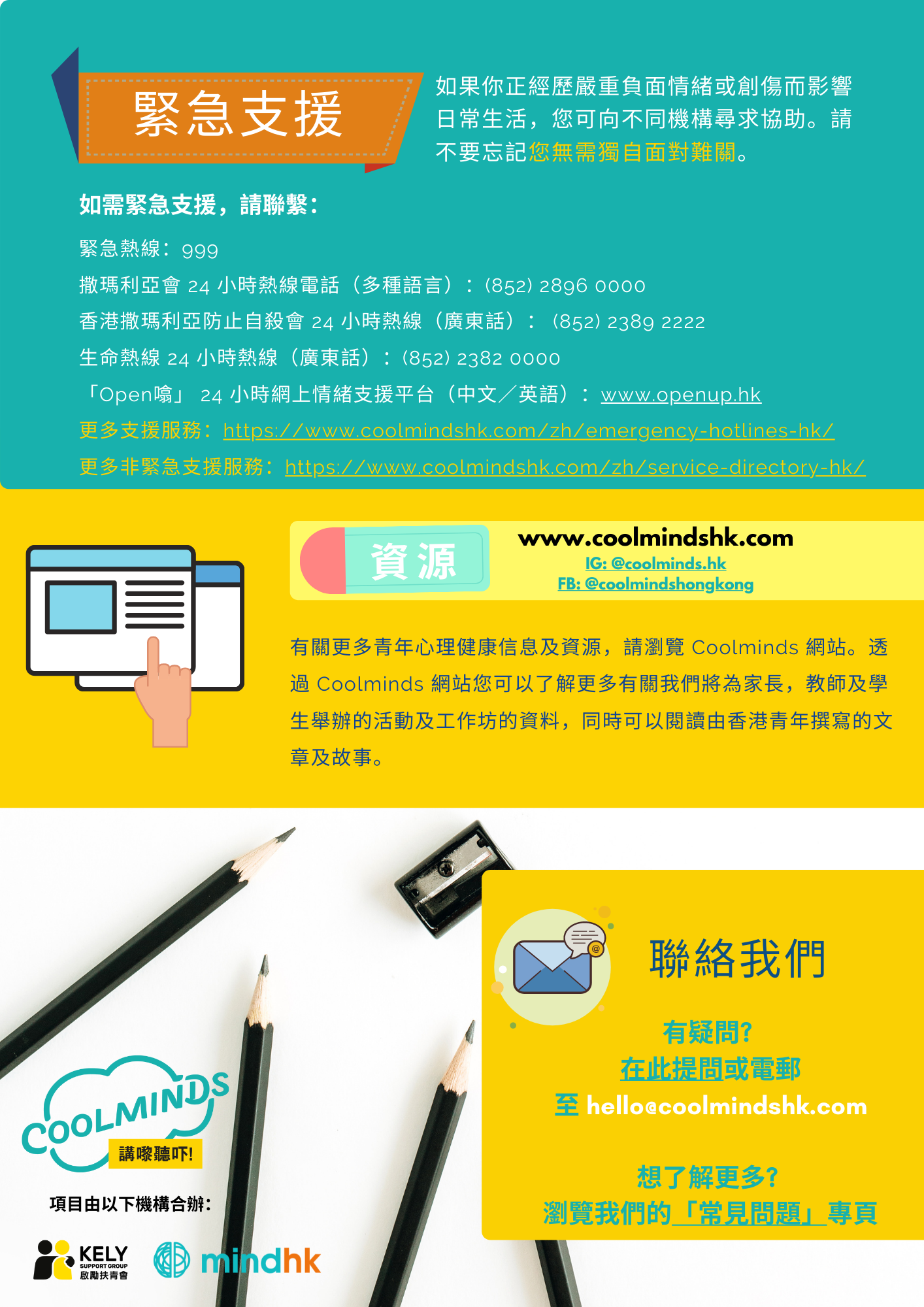更多⽀援服務:https://www.coolmindshk.com/zh/emergency-hotlines-hk/